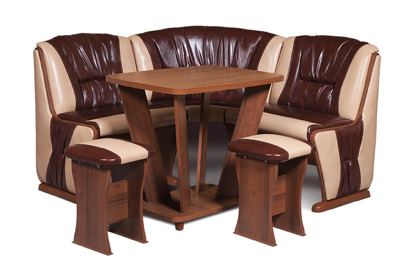 Диван для кухни «Консул-1» имеет мягкую обивочную часть из кожзама. Мебельный гарнитур может быть выполнен в различных цветовых вариациях. Компактная угловая конструкция идеально подойдет для небольшой кухни и такой же семьи.
