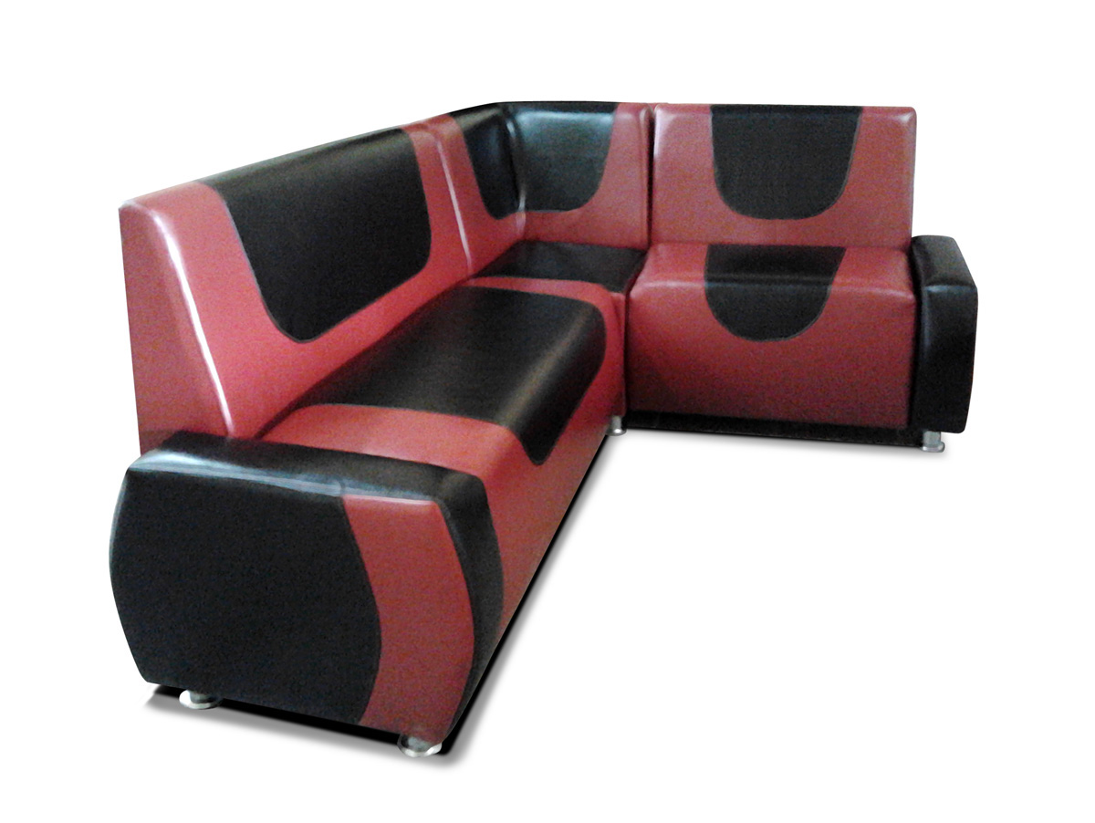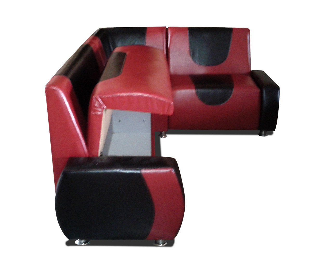 Угловой диван «Феникс» выполнен в интересном сочетании красного и черного цвета. Корпус дивана выполнен из качественного кожзама, слабо отличающегося по характеристикам от натуральной кожи. В качестве основания в данной модели выступают небольшие цилиндрические ножки из металла.
