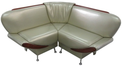 Представленная угловая скамья сделана из искусственной кожи, цвет которой вы можете самостоятельно, исходя из своих вкусовых предпочтений. Также вы можете подобрать удобный для вас размер, который будет идеально подходить под габариты помещения. Футуристичный дизайн напоминает оформление космических кораблей. Если вы мечтаете о современной стильной мебели, то такой кухонный уголок именно для вас.