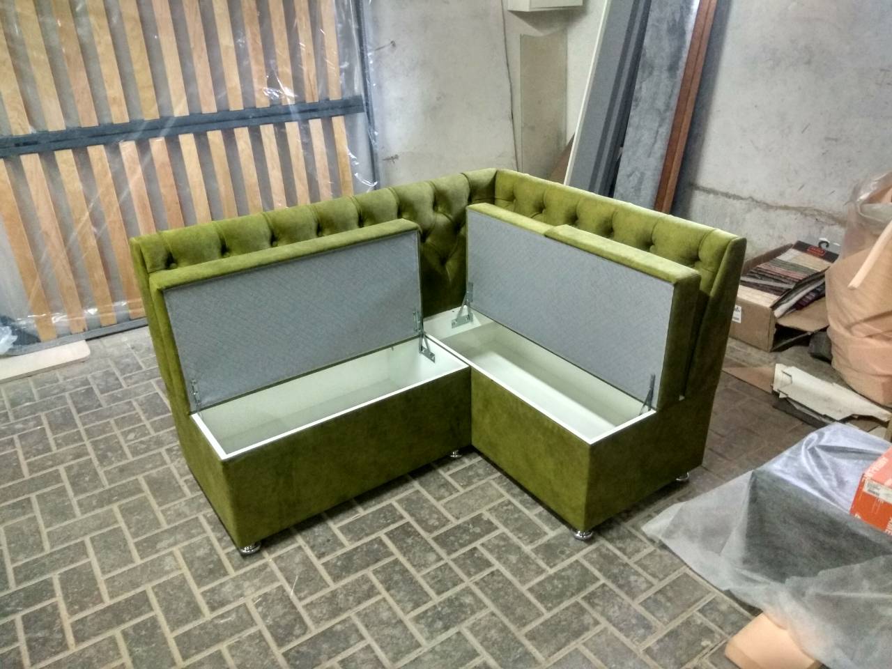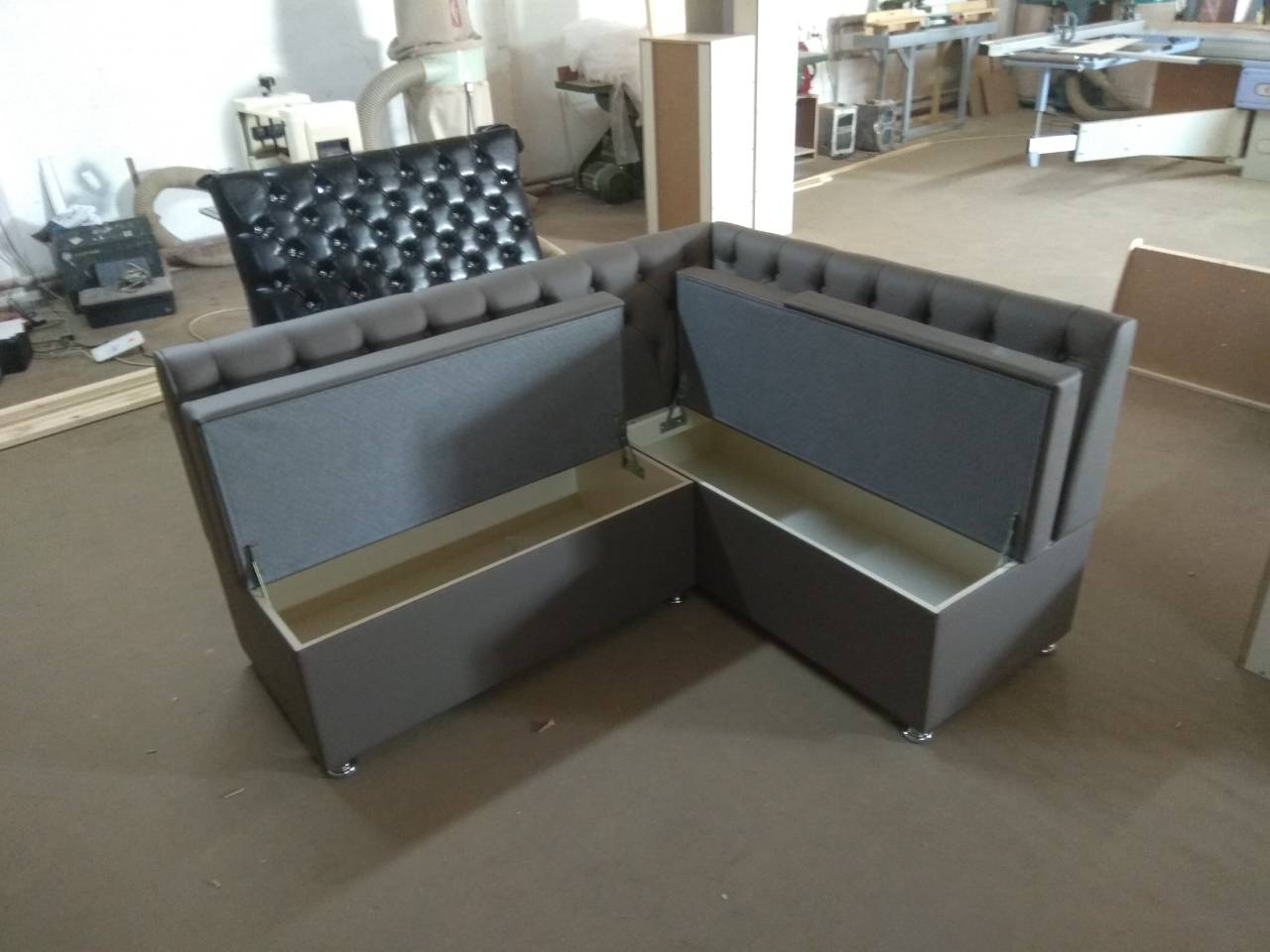 Двухцветный диван для небольшой кухни. Обивка из экокожи. Наличие ниши. Габариты: 1300х600х750 мм.