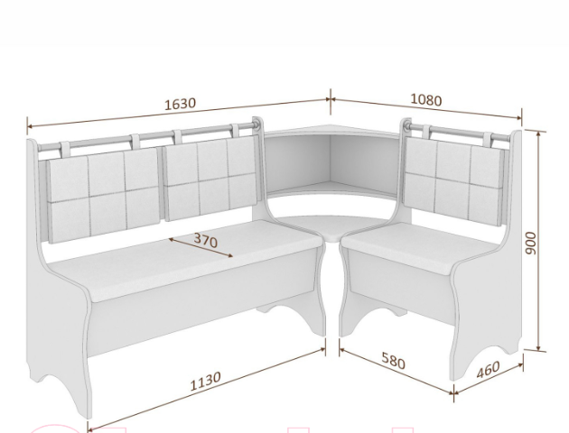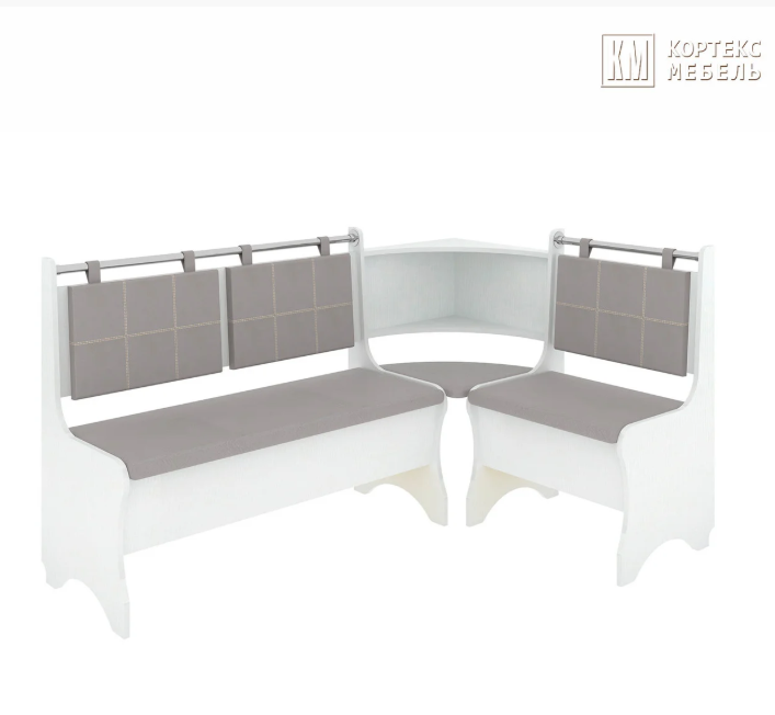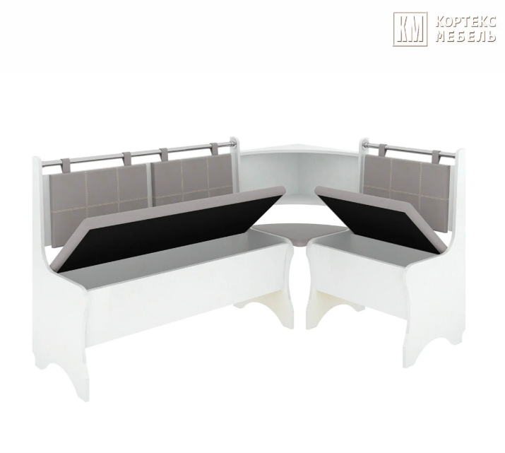 В набор входит: угловая скамья, стол, два табурета. Обивка: экокожа, ткань.