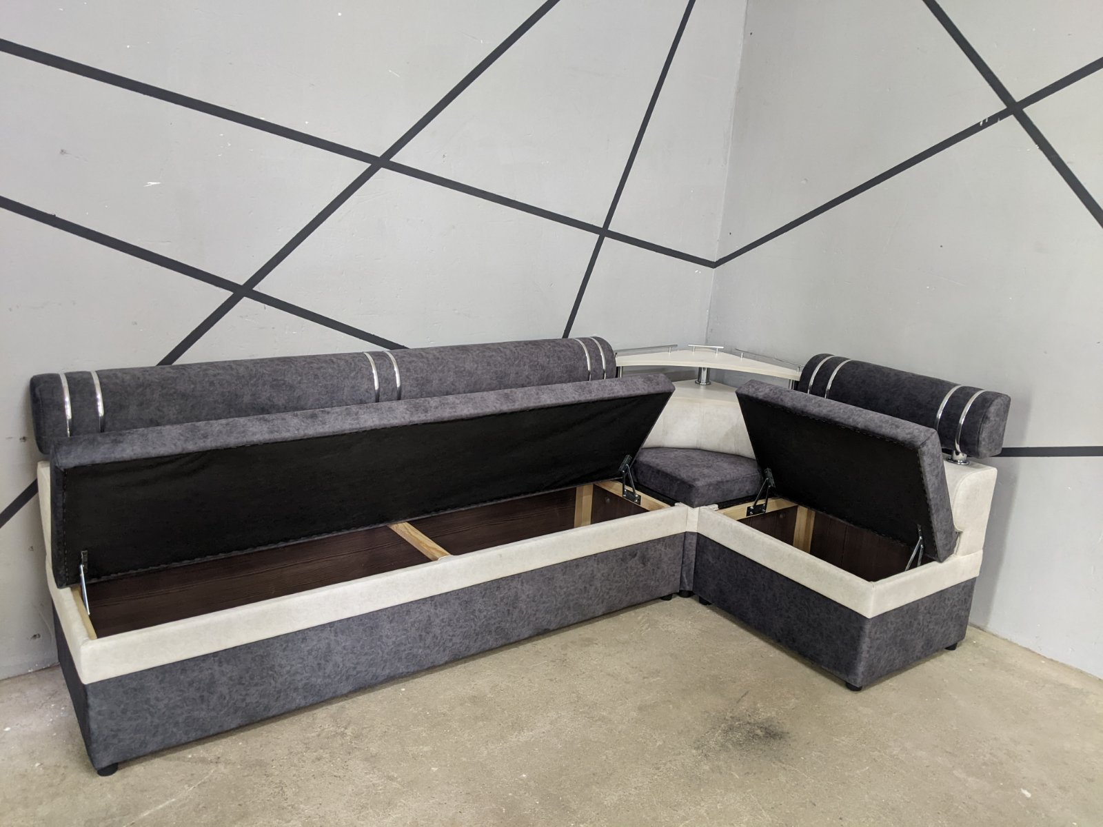Кухонная угловая скамья с мягкой спинкой и сидушкой. Качественные материалы.