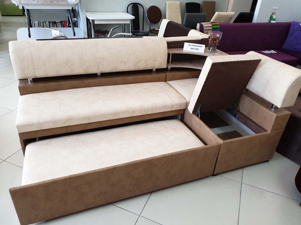В набор входит: угловая скамья, стол, два табурета. Обивка: экокожа, ткань.