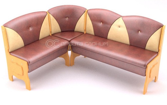 Угловой диван подарит интерьеру кухни привлекательный и невероятно удобный предмет мебели. Одной из особенностей модели является наличие вместительной ниши для хранения. Декоративная стяжка на спинке дивана придает конструкции стильный и интересный внешний вид. Предлагается на выбор несколько вариантов цветов обивки (кожзам).