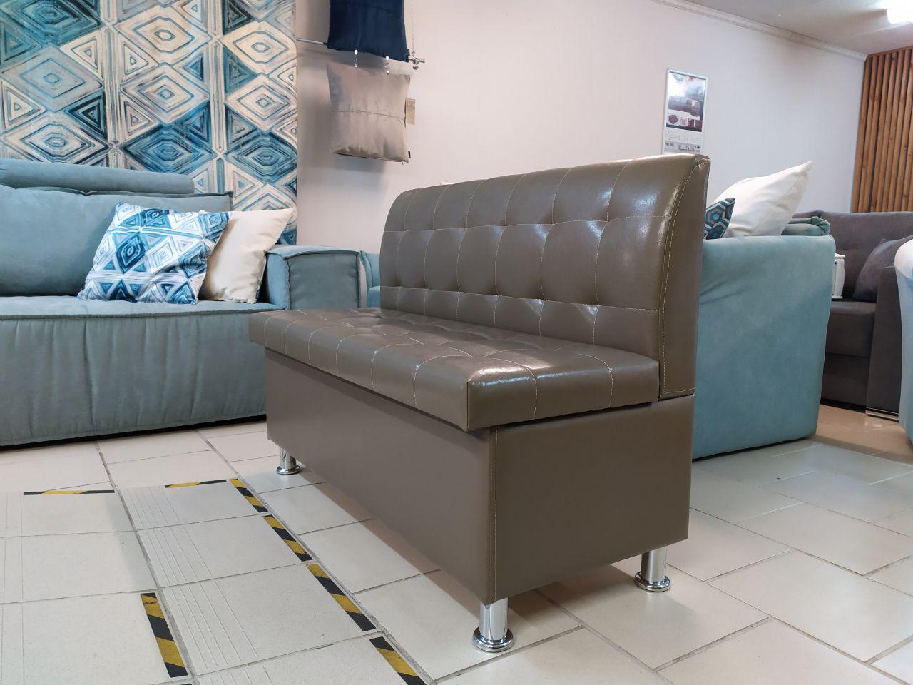 В набор входит: угловая скамья, стол, два табурета. Обивка: экокожа, ткань.