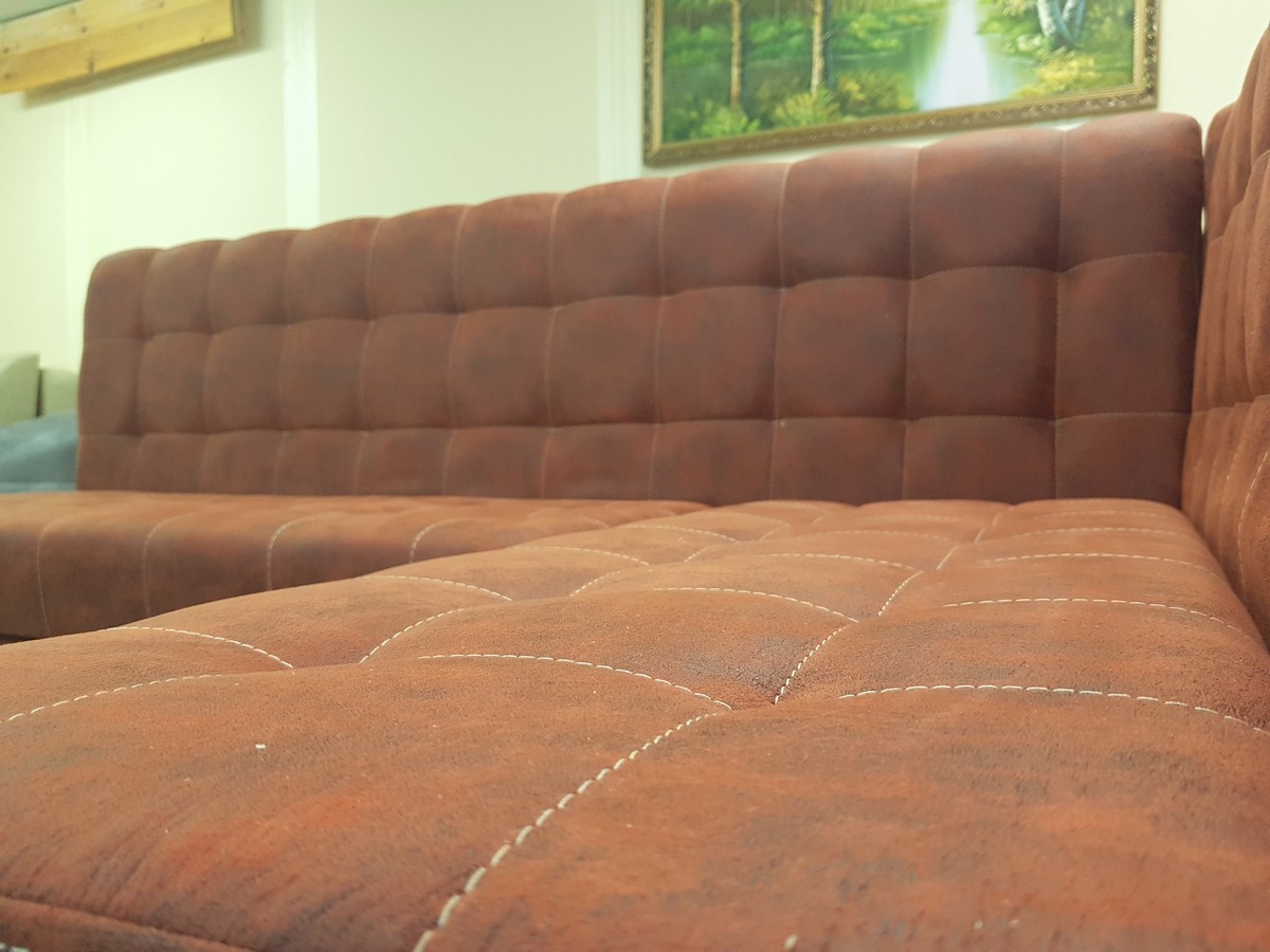 Габариты: 1800х620х900 мм. Есть спальное место. Ткань: моющийся велюр.