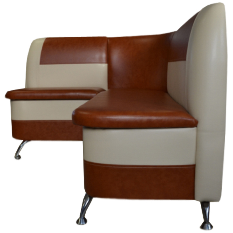 Диван «Romeo 1» – это мягкая угловая модель для кухни. Роль опор играют изящные хромированные ножки. Под сиденьями находятся объемные ниши для хранения различных кухонных принадлежностей. Предлагается большая цветовая гамма.