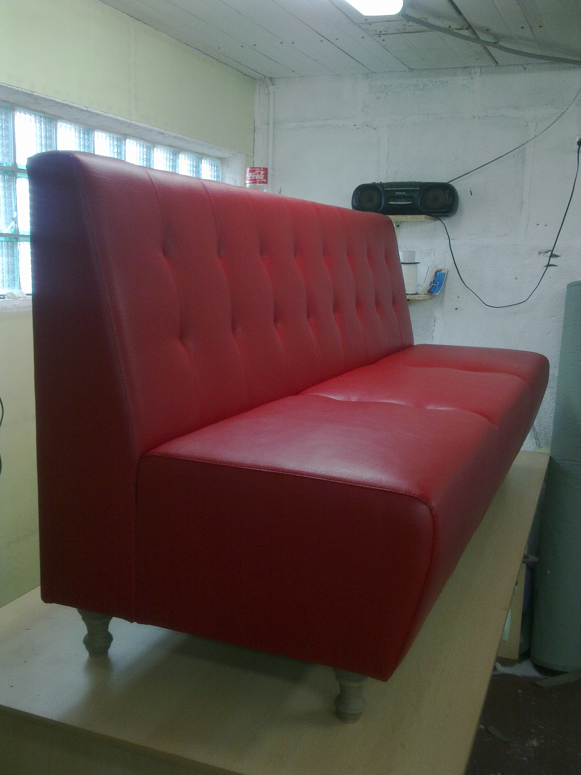 Элегантный небольшой диван с легкой простежкой без механизма трансформации. Изготовление в размерах и цветовой гамме на вкус заказчика. Обивка единым чехлом с легкой простежкой из экокожи. Спинка для комфотного сидения слегка откинута назад.