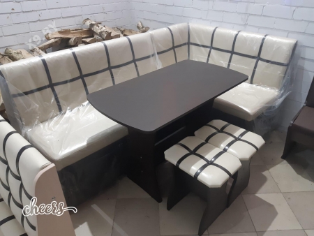 Кухонная угловая скамья с мягкой спинкой и сидушкой. Качественные материалы.