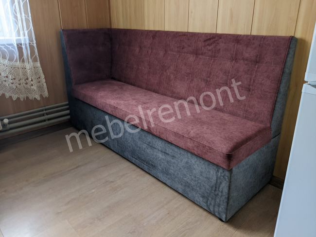 Мягкий кухонный уголок серого цвета на деревянных опорах. Габариты: 1200х1900х850 мм.