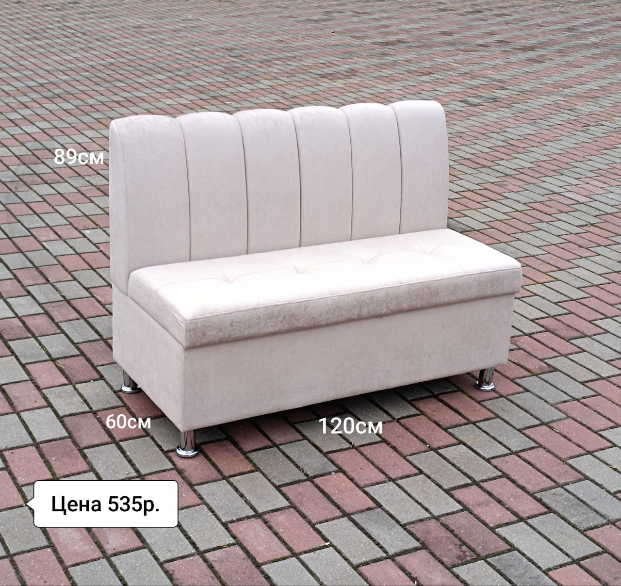 Размер: 120x60x89 см. Материал: износостойкий велюр. Ниша для хранения.