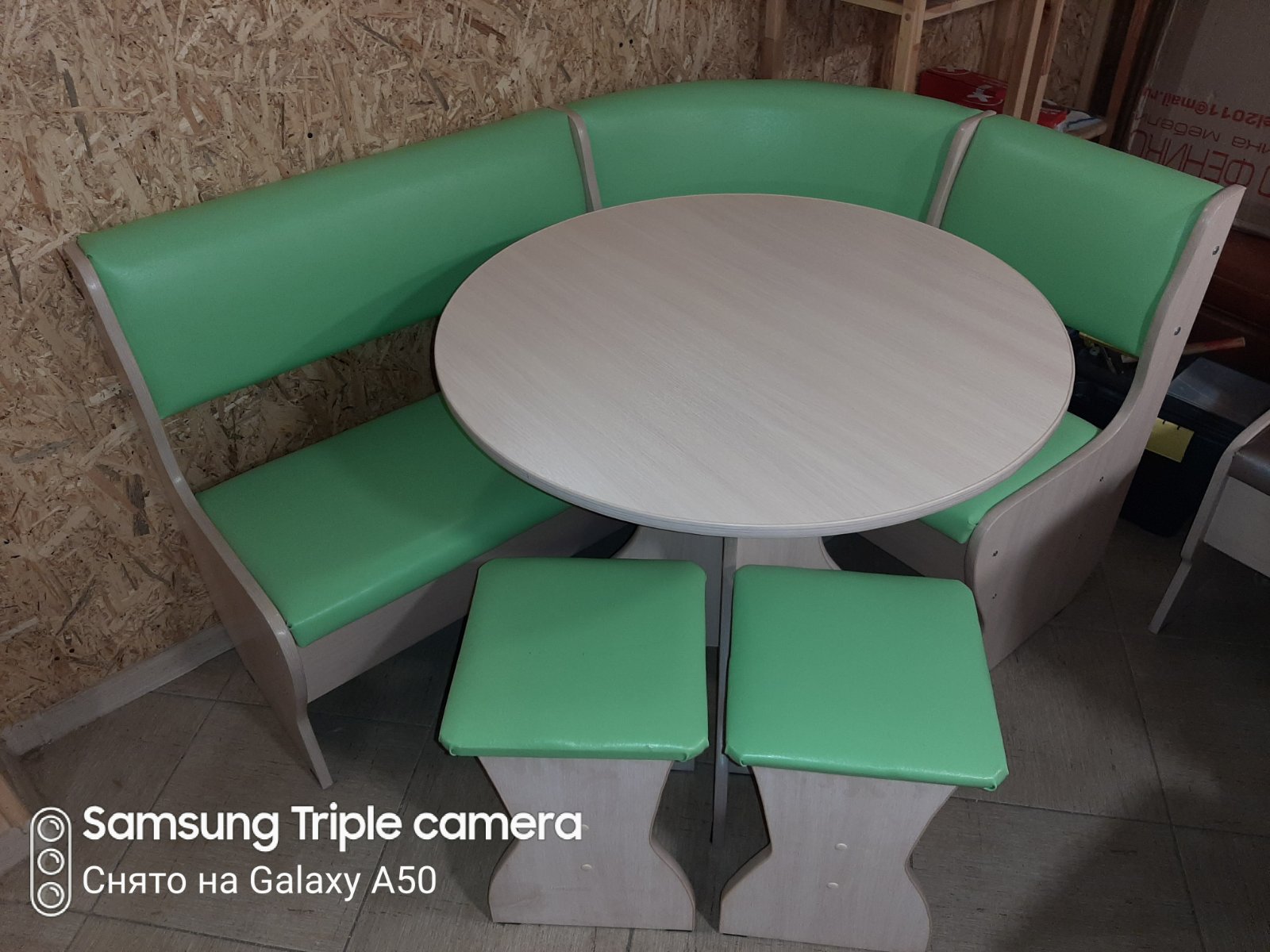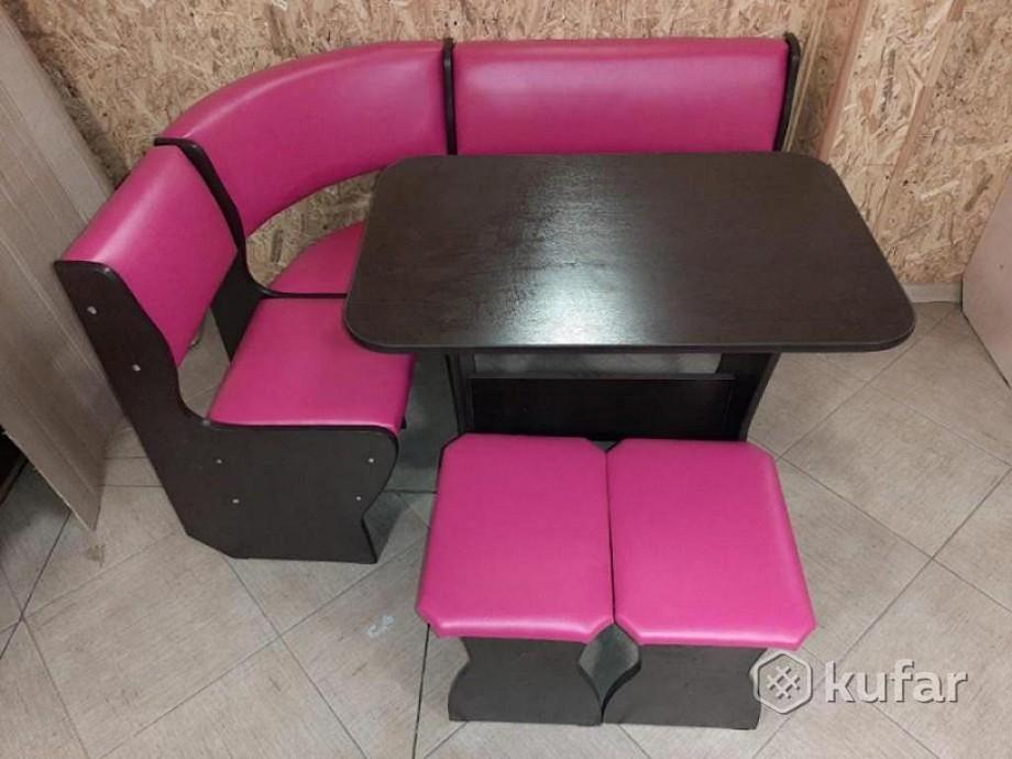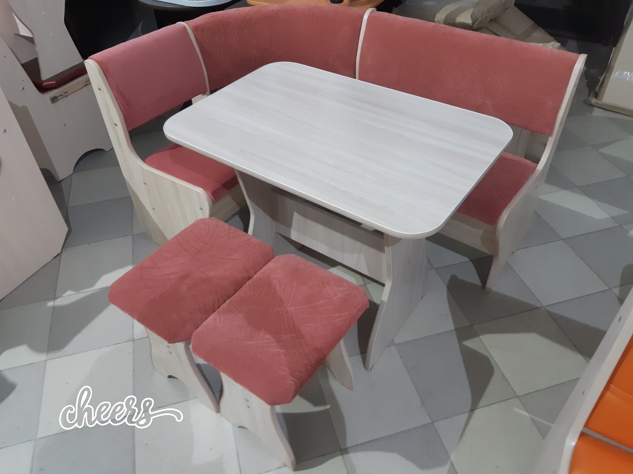 код 104428В набор входит угловая скамья, стол и два табурета. Обивка: кожзам. Ящик для хранения.