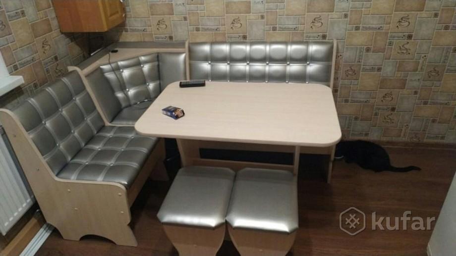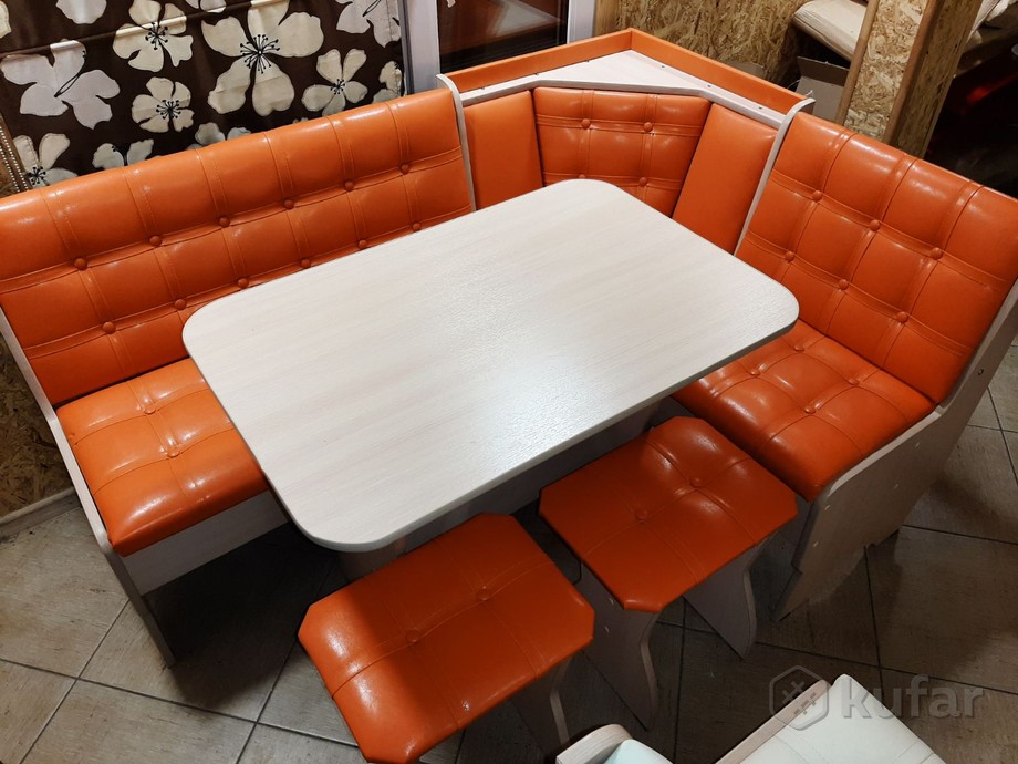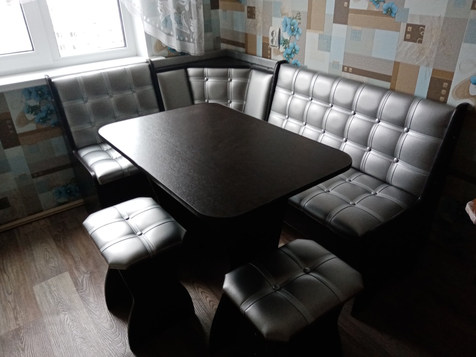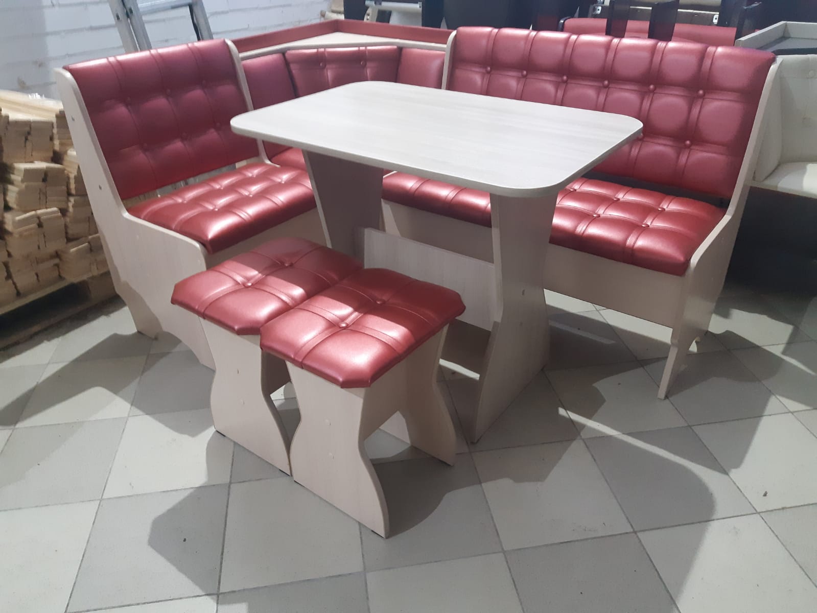 код 104435В комплекте угловая скамья, стол, два табурета. Наполнение: поролон. Обивка: кожзам.