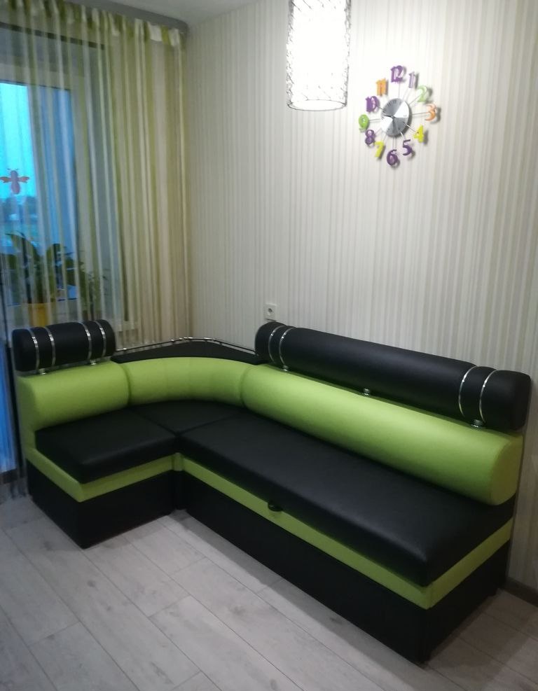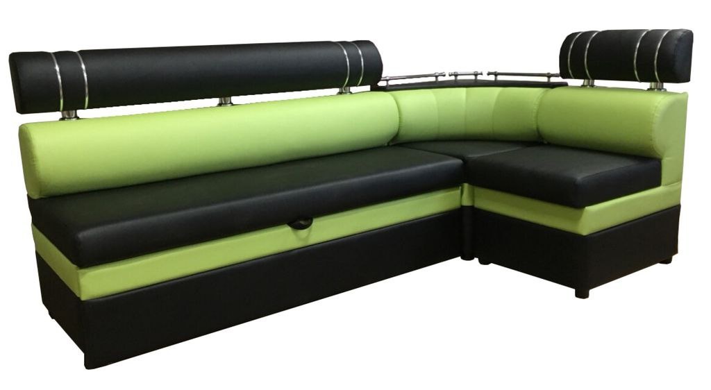 Кухонный уголок в современном стиле. Очень удобная изогнутая спинка, которая способствует комфортному и полноценному отдыху. Дополнительная отдельная полка с хромированными перильцами в стиле Ретро. Ниша для хранения. Универсальность угла.