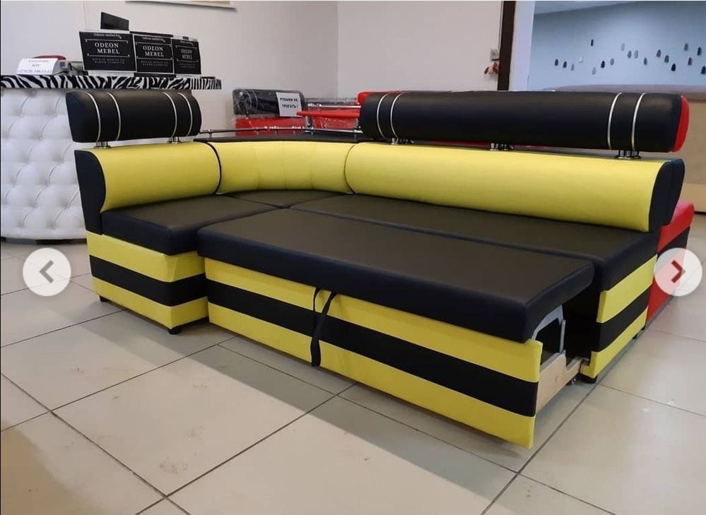 Кухонный уголок в современном стиле. Очень удобная изогнутая спинка, которая способствует комфортному и полноценному отдыху. Дополнительная отдельная полка с хромированными перильцами в стиле Ретро. Ниша для хранения. Универсальность угла.