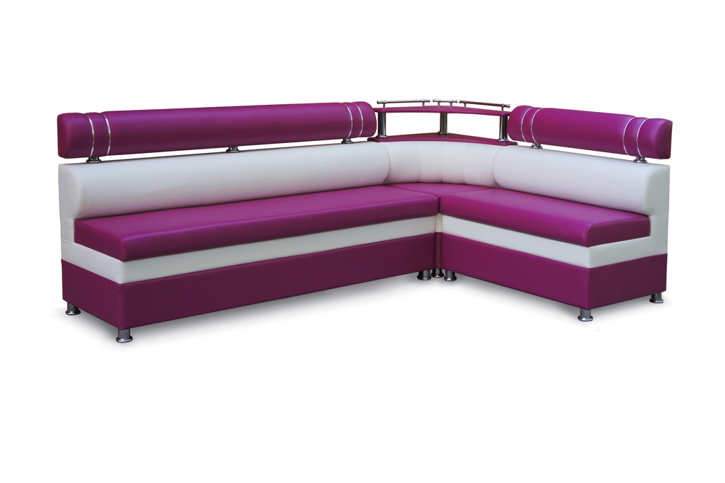 Кухонный уголок в современном стиле. Очень удобная изогнутая спинка, которая способствует комфортному и полноценному отдыху. Дополнительная отдельная полка с хромированными перильцами в стиле Ретро. Ниша для хранения. Универсальность угла.