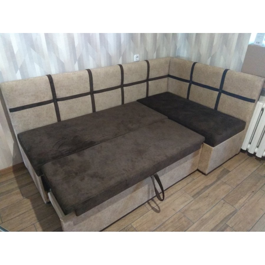 Кухонный раскладной диван с в тканевой обивке. Общий габарит: 1800 х 1200 х 500 мм.