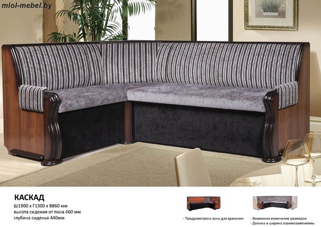 Кухонный уголок «Каскад» с фигурными подлокотниками