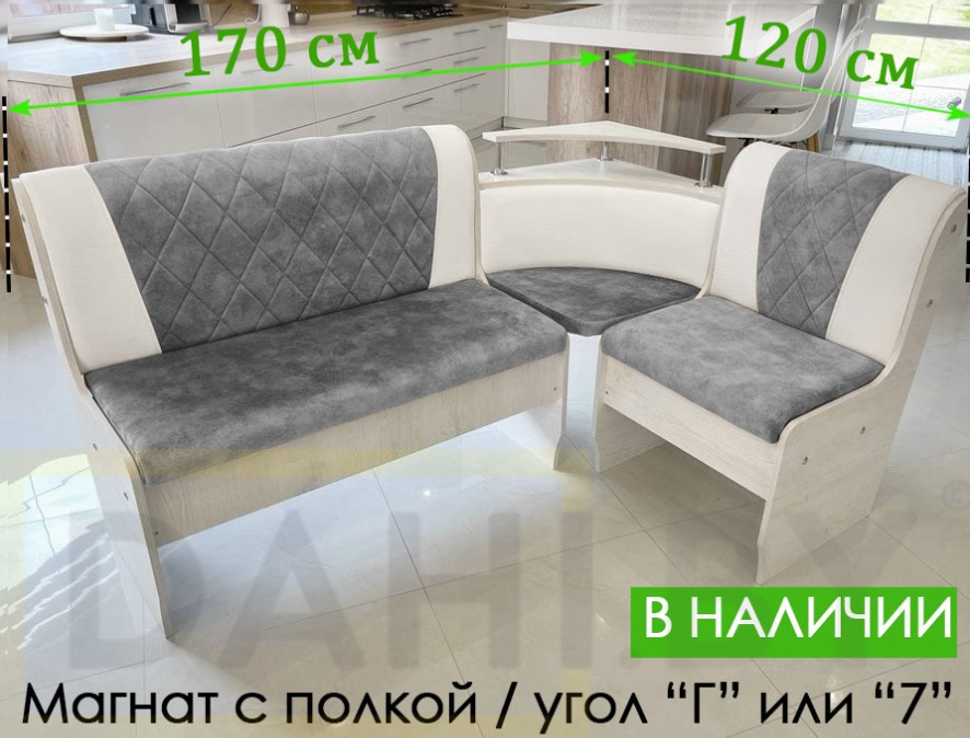 Кухонный уголок «Магнат» с полкой (угол "г" или "7"), 120х170 см, ЛДСП сосна каньон