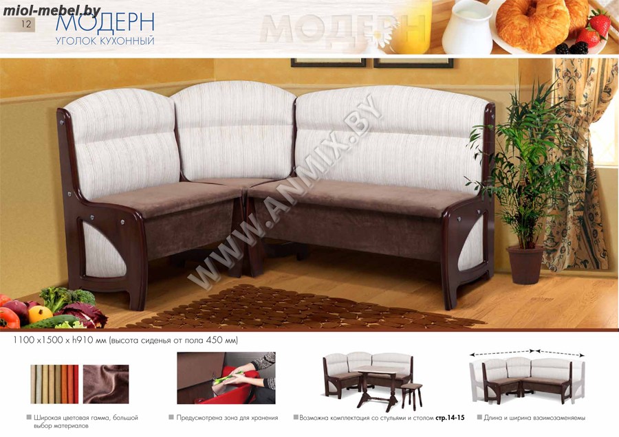 код 88059Угловая кухонная скамья в гармоничной расцветке. Возможно исполнение в любых размерах.