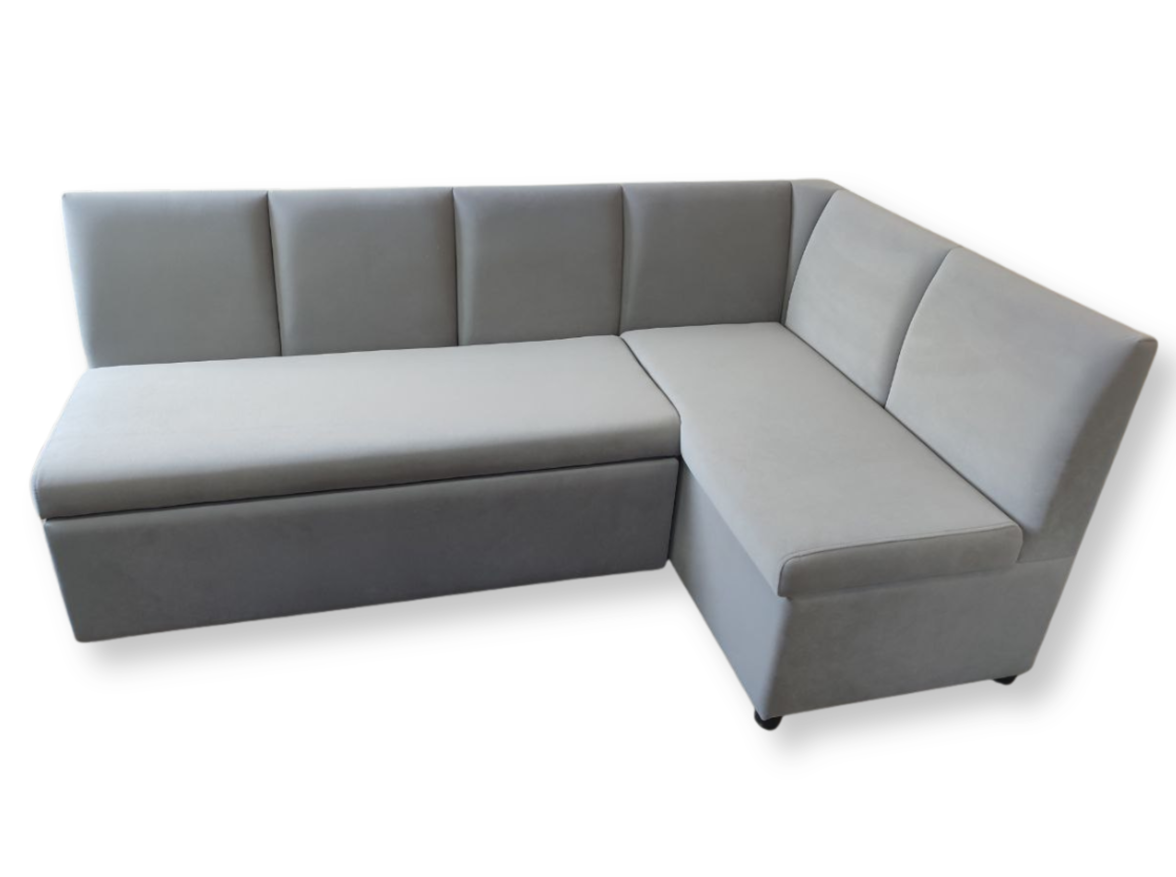 Состоит из углового кухонного дивана, обеденного стола и двух мягких табуретов. Под сиденьем находятся ящики для хранения. Универсальная сборка - право/лево.