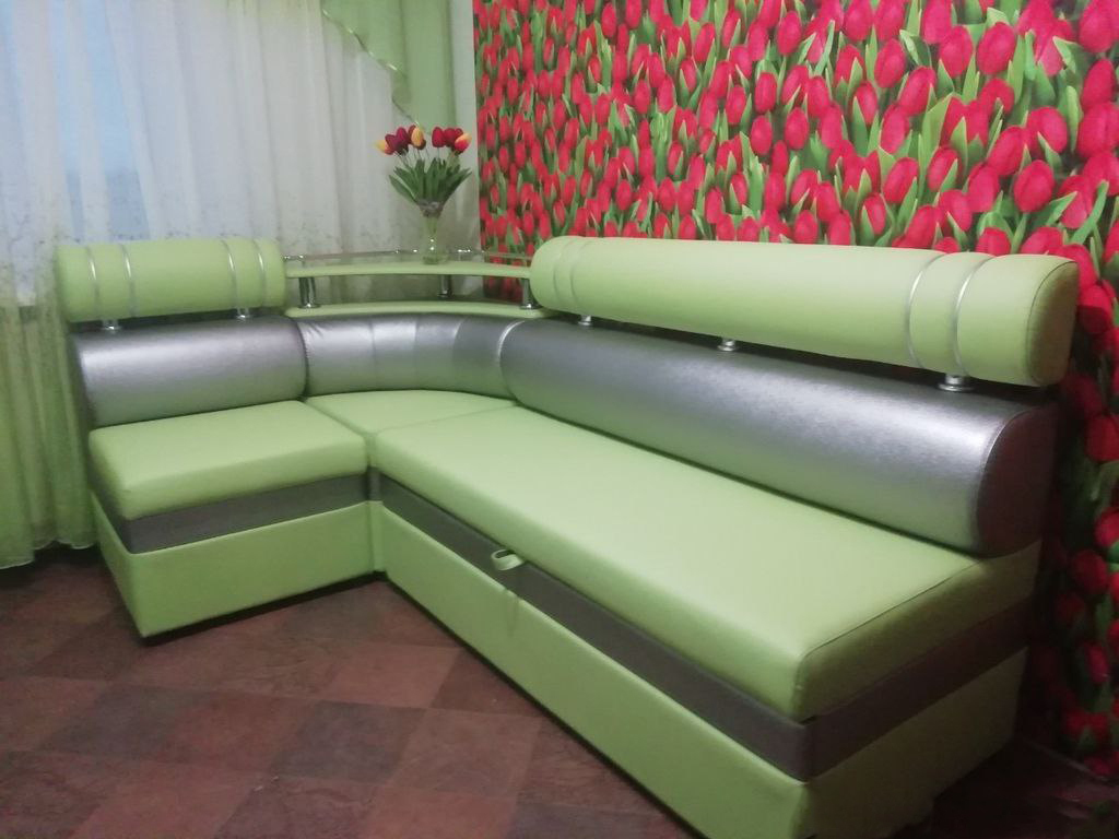 Кухонный уголок в современном стиле. Очень удобная изогнутая спинка, которая способствует комфортному и полноценному отдыху. Дополнительная отдельная полка с хромированными перильцами в стиле Ретро. Ниша для хранения. Универсальность угла.