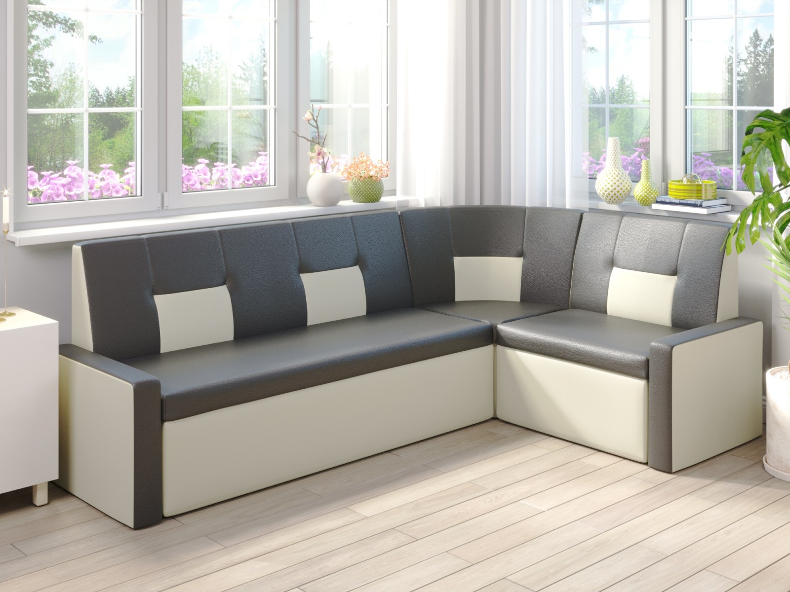 Диван кухонный угловой с нишами для хранения черно-белый