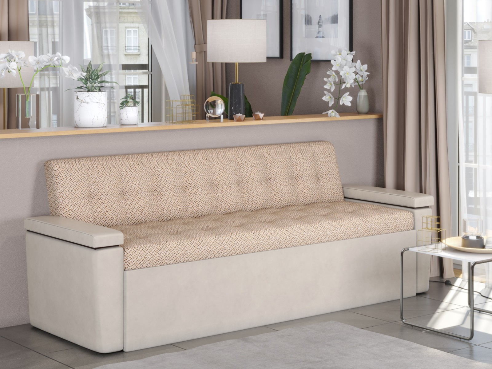 Кухонный уголок «Секрет-4» прямой (рогожка светлая/кожзам капро эко крем)