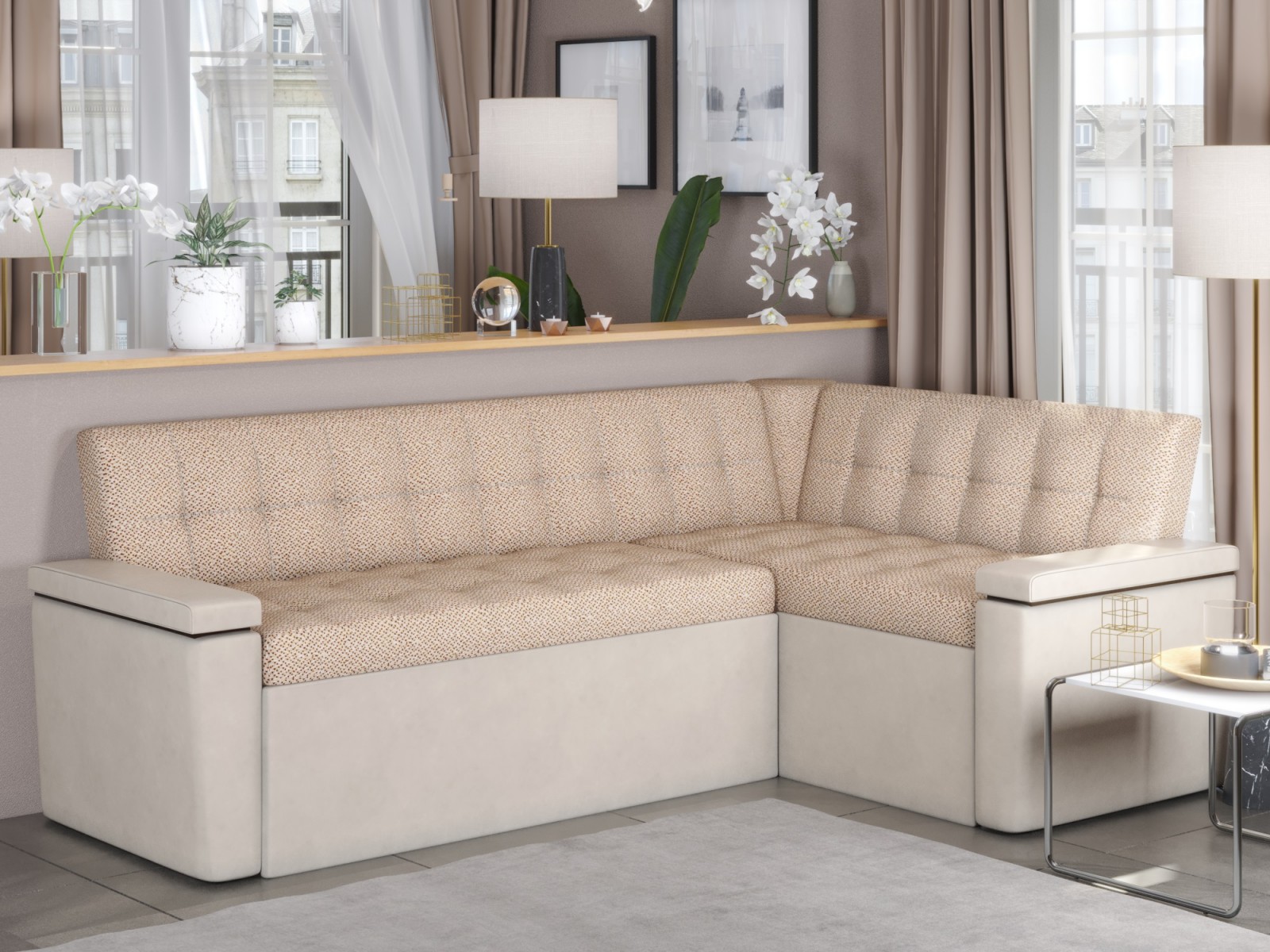 Кухонный уголок «Секрет-4» угловой (рогожка светлая/кожзам капро эко крем)