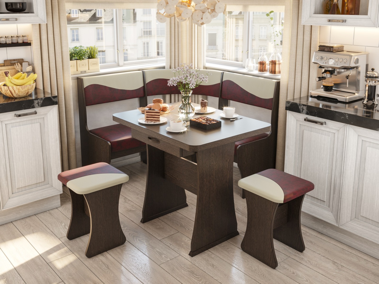 Кухонный уголок «Титул-мини» (дуб венге/кожзам бордо, какао)