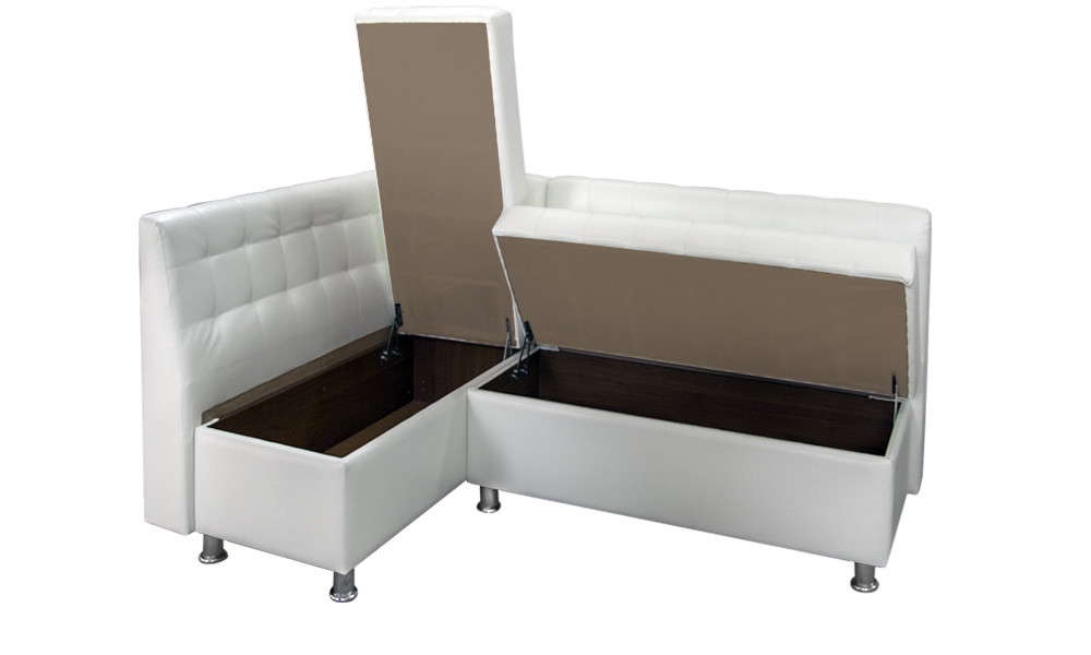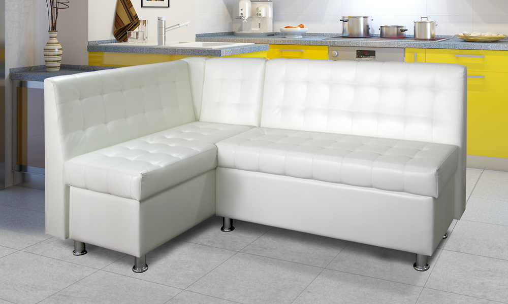 Для создания максимально комфортного и красивого интерьера на кухне данный угловой диван является идеальным вариантом, за счет сочетания элегантного классического дизайна и большой функциональности. Диван для кухни имеет достаточно прочную и долговечную конструкцию, каркас которой изготовлен из высококачественного и экологически чистого МДФ, обтянутого экокожей невероятно приятного и роскошного белого цвета.