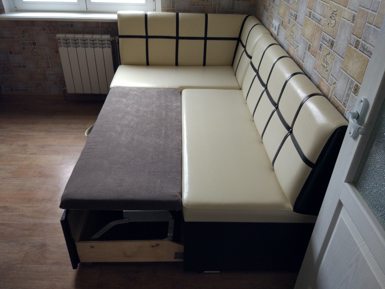 Диван кухонный угловой с нишами для хранения бежевый