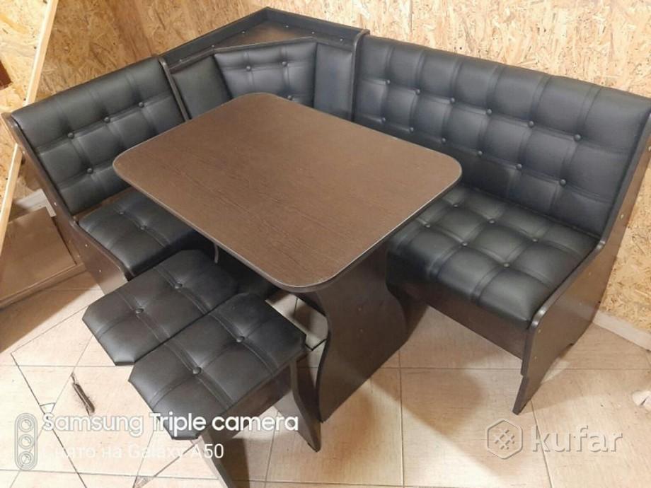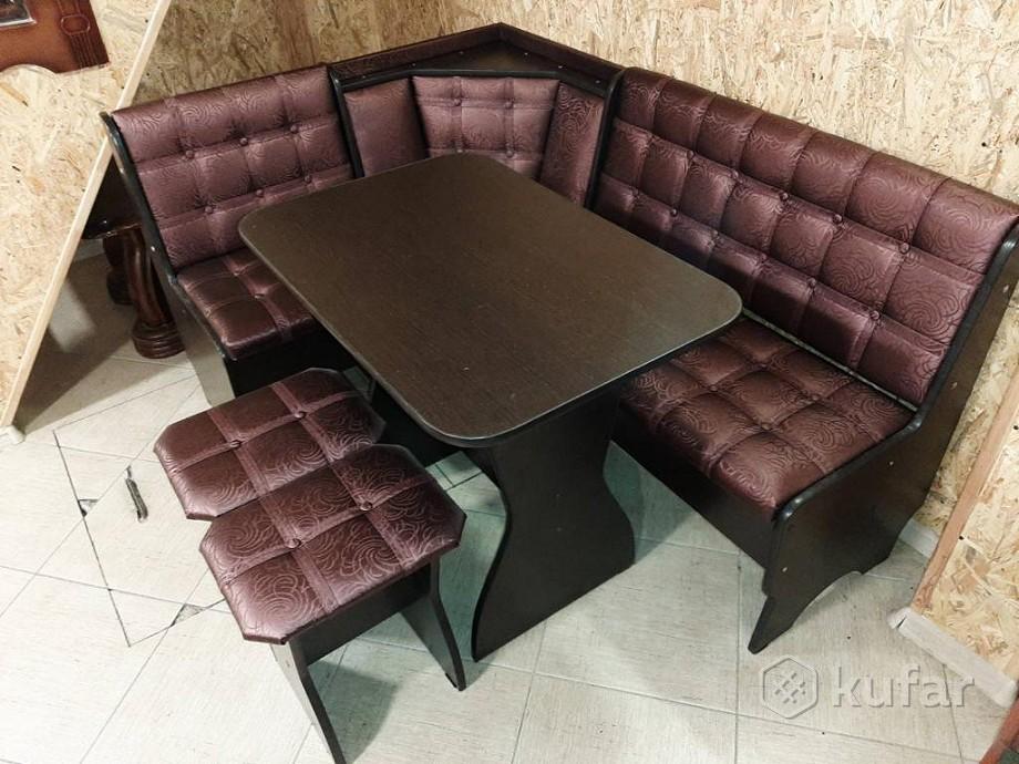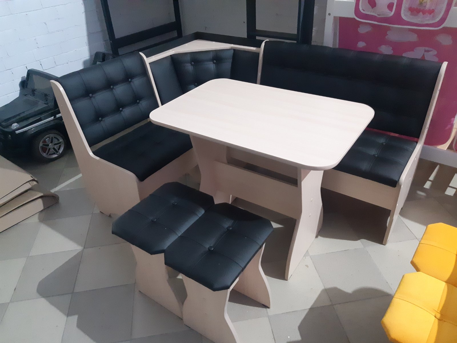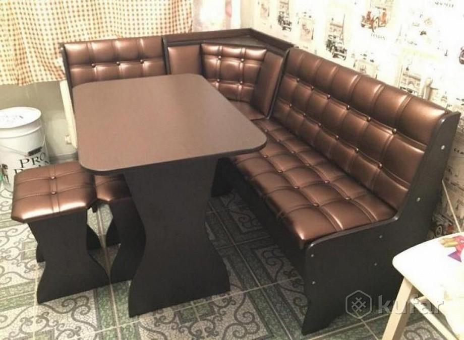 код 104436В комплекте угловая скамья, стол, два табурета. Наполнение: поролон. Обивка: кожзам.