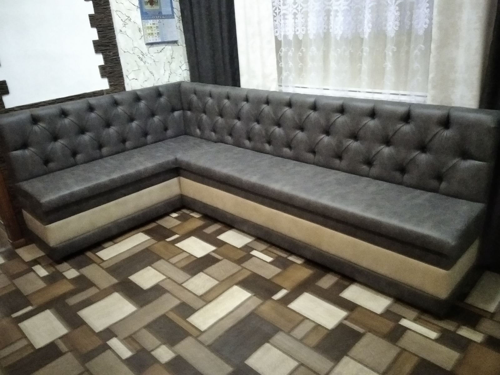 Кухонный раскладной диван с в тканевой обивке. Общий габарит: 1800 х 1200 х 500 мм.