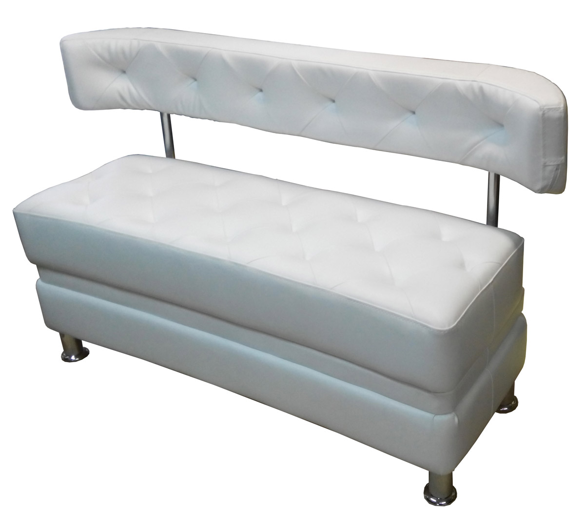 Скамья кухонная «БЭК-ТРОЛЬ 110» в белом цвете выглядит утончённо благодаря сиденью и спинке, которые декорированы стяжкой. Предусмотрен большой выбор различных обивок.