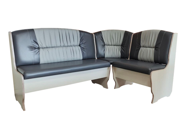 В набор входит: угловая скамья, стол, два табурета. Обивка: экокожа, ткань.