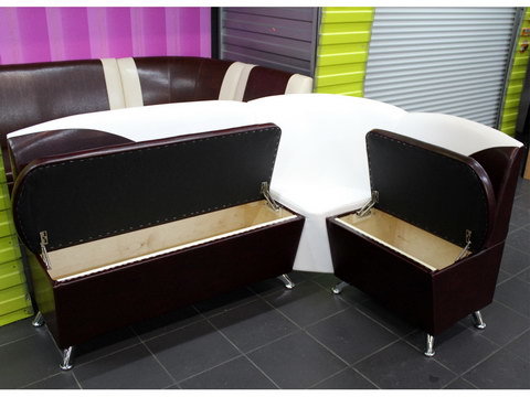 Стильный угловой диван на две открывающиеся ниши. Уголок кухонный «Оскар III» изготовлен в стандартном размере 1,2 х 1,7м. Может быть изготовлен по индивидуальным размерам. Широкий выбор обивочных материалов.