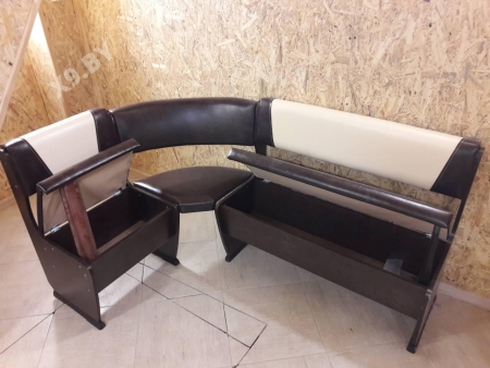 Состоит из углового кухонного дивана, обеденного стола и двух мягких табуретов. Под сиденьем находятся ящики для хранения. Универсальная сборка - право/лево.