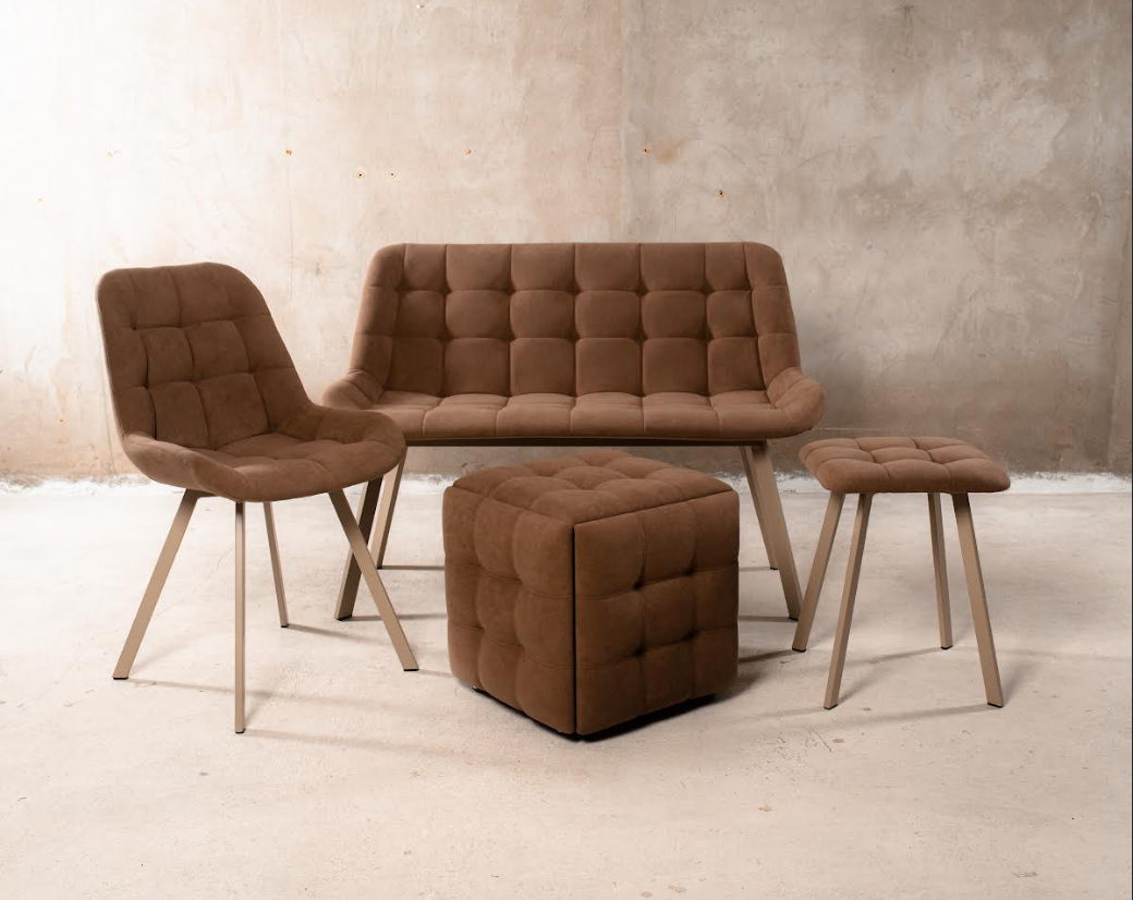 Вы можете выбрать расцветку и материал обивки, цвет металлического основания и даже ширину сидения, тем самым сделав свою скамью уникальной и единственной в своем роде.