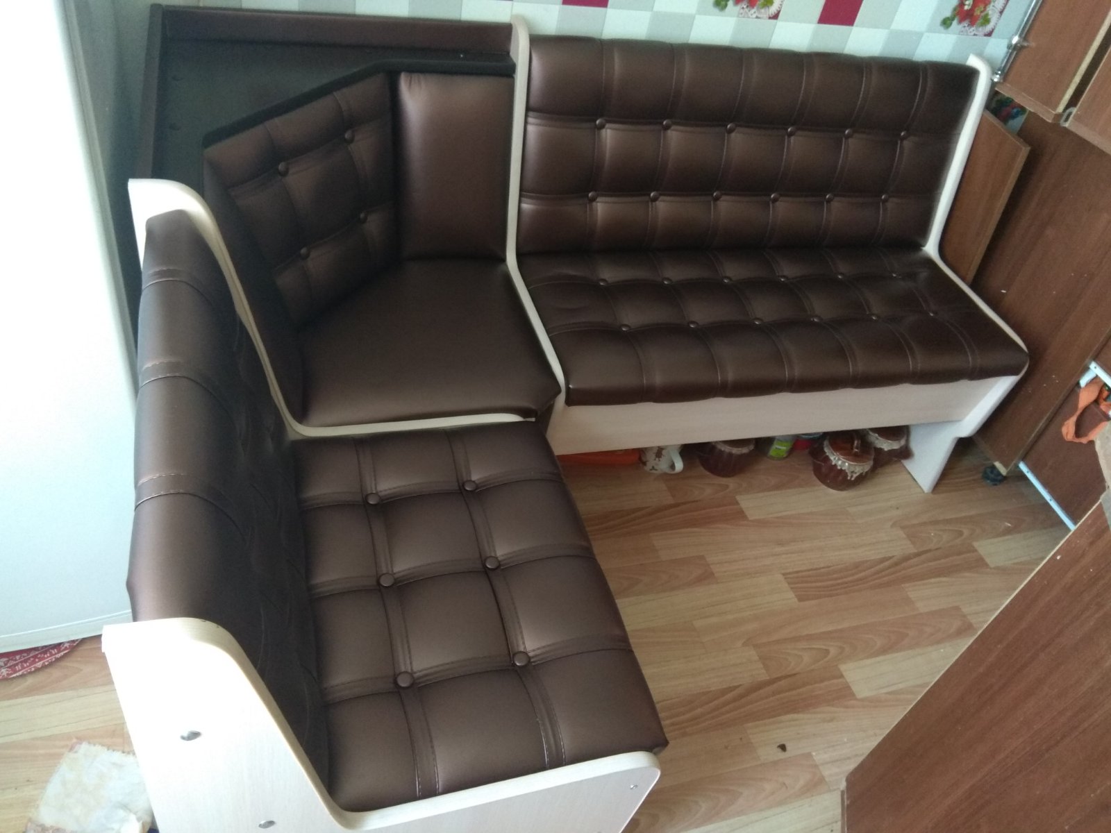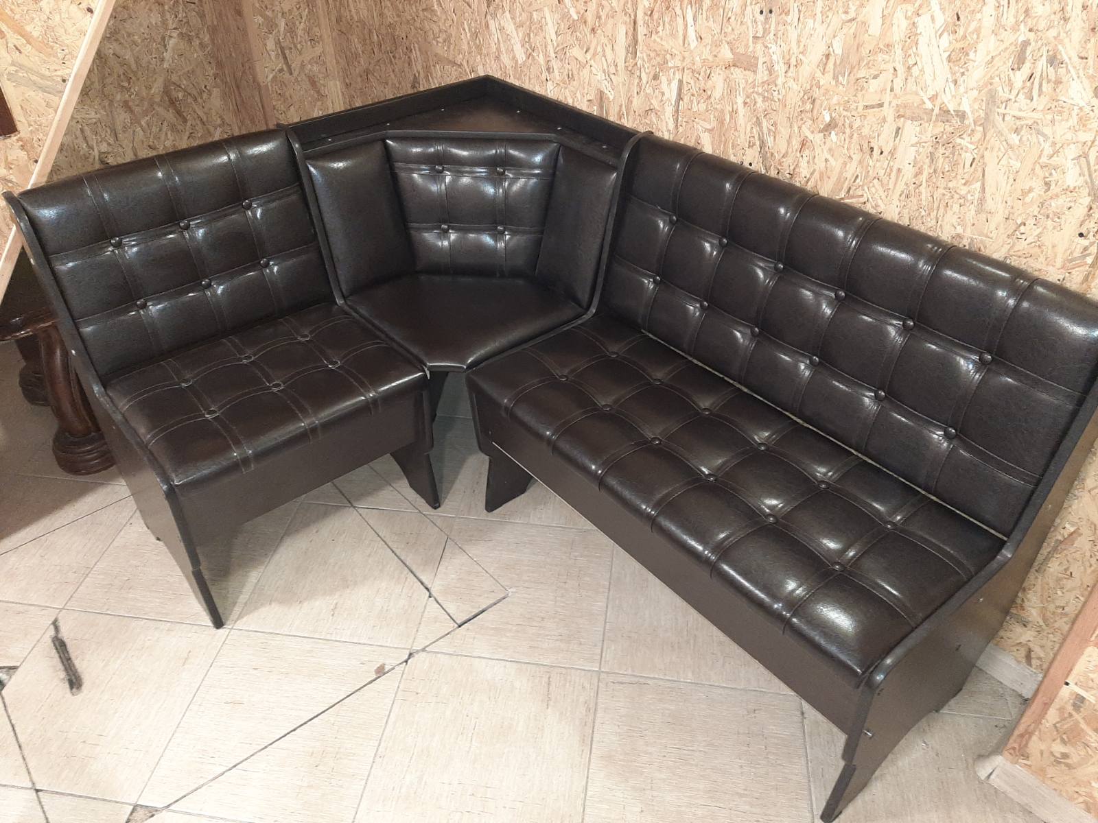 Угловой кухонный диван с нишами. Сидушка и спинка декорированы пиковкой.