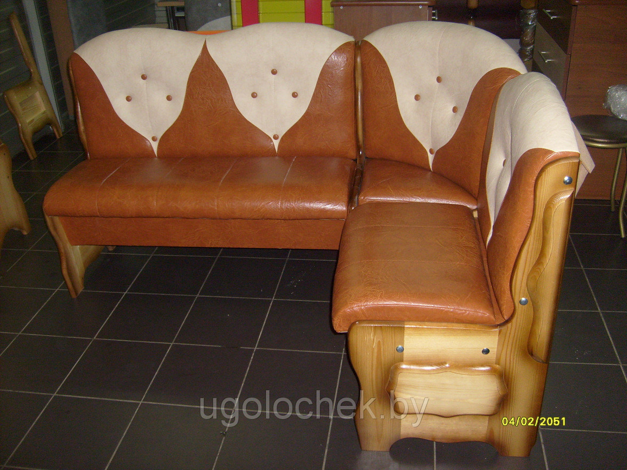 В набор входит: угловая скамья, стол, два табурета. Обивка: экокожа, ткань.