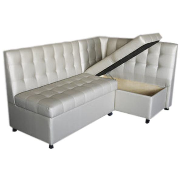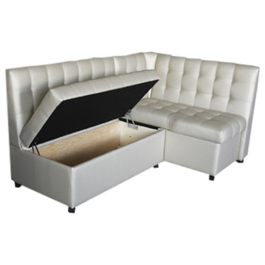 Угловая скамья оснащена вместительными нишами для хранения различных предметов. Сиденье и спинка скамьи украшает декорированная стяжка. Превосходную устойчивость модели придают небольшие квадратные ножки, выполненные в темном тоне.