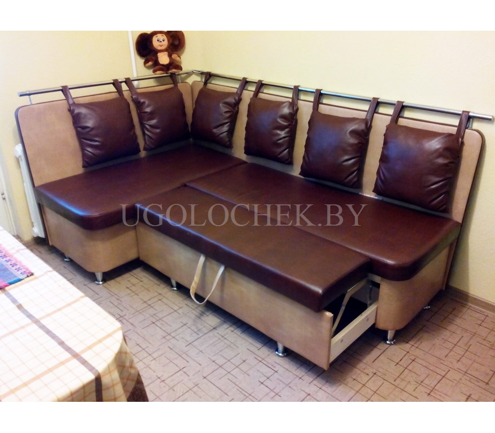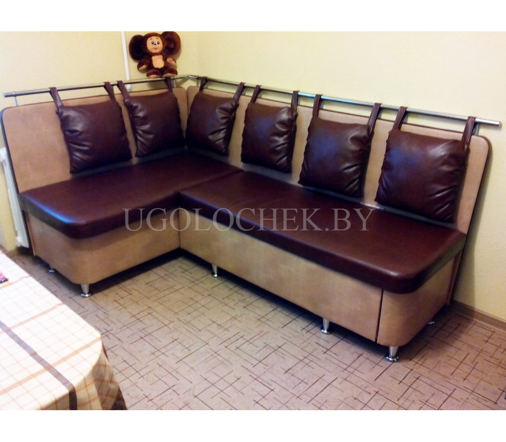 Двухцветный диван для небольшой кухни. Обивка из экокожи. Наличие ниши. Габариты: 1300х600х750 мм.