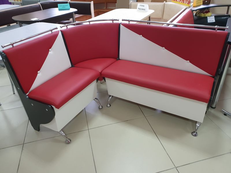 В набор входит: угловая скамья, стол, два табурета. Обивка: экокожа, ткань.