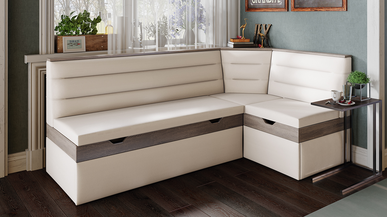 Скамья угловая со спальным местом «Корсика» (Дуб Сонома трюфель/Кожзам кремово-бежевый)