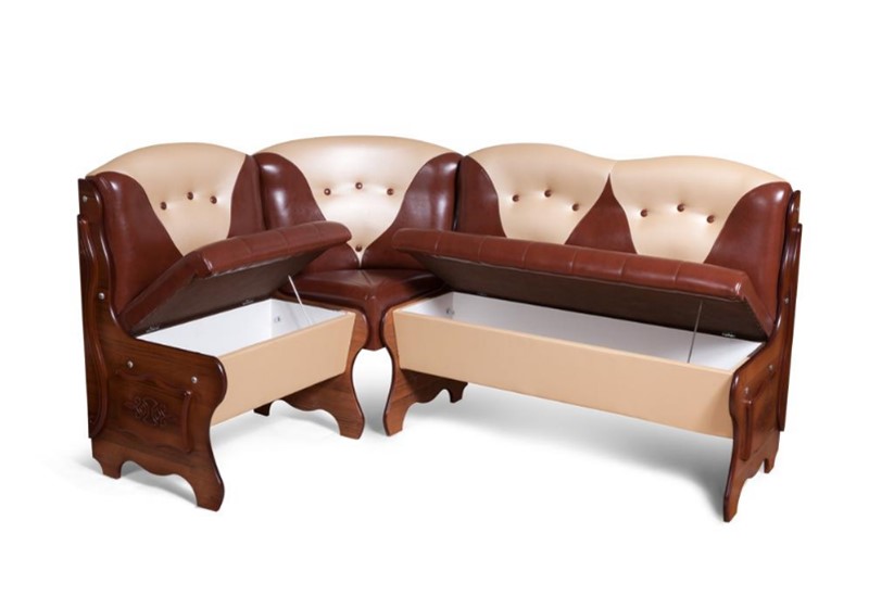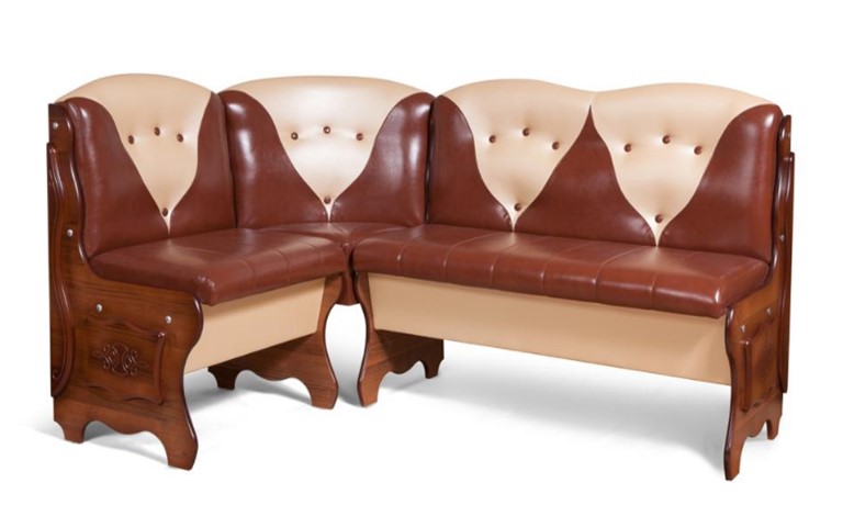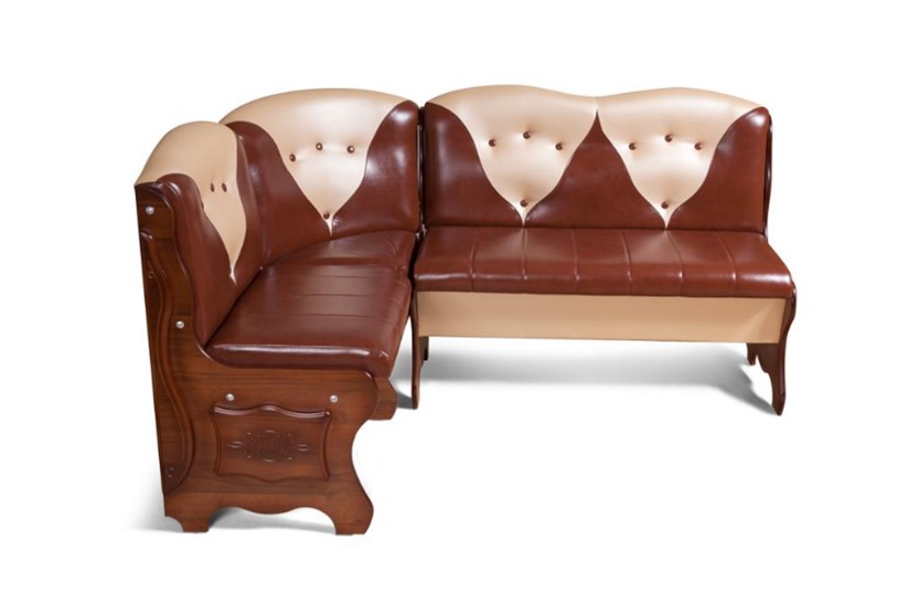 В набор входит: угловая скамья, стол, два табурета. Обивка: экокожа, ткань.