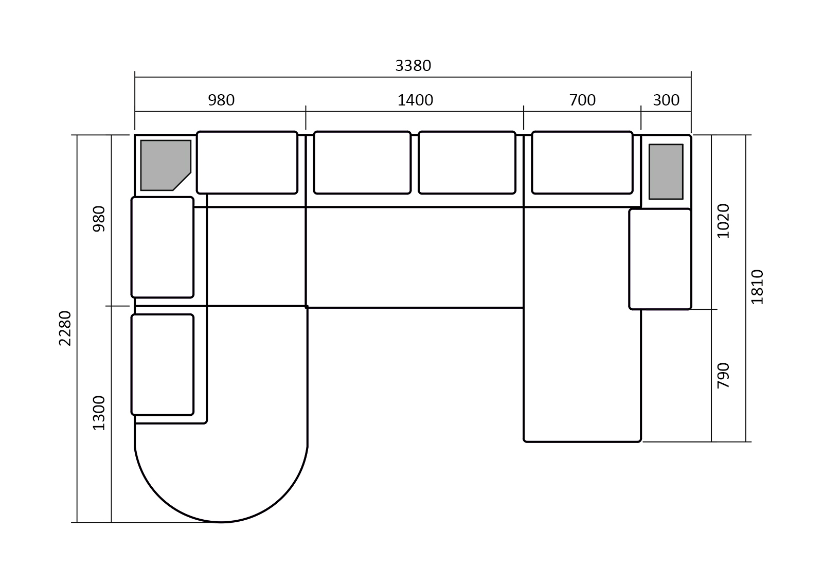 Размер: 1920x1100x900 мм. Наполнение посадочного места: ППУ ST стандартный, пружинная змейка.