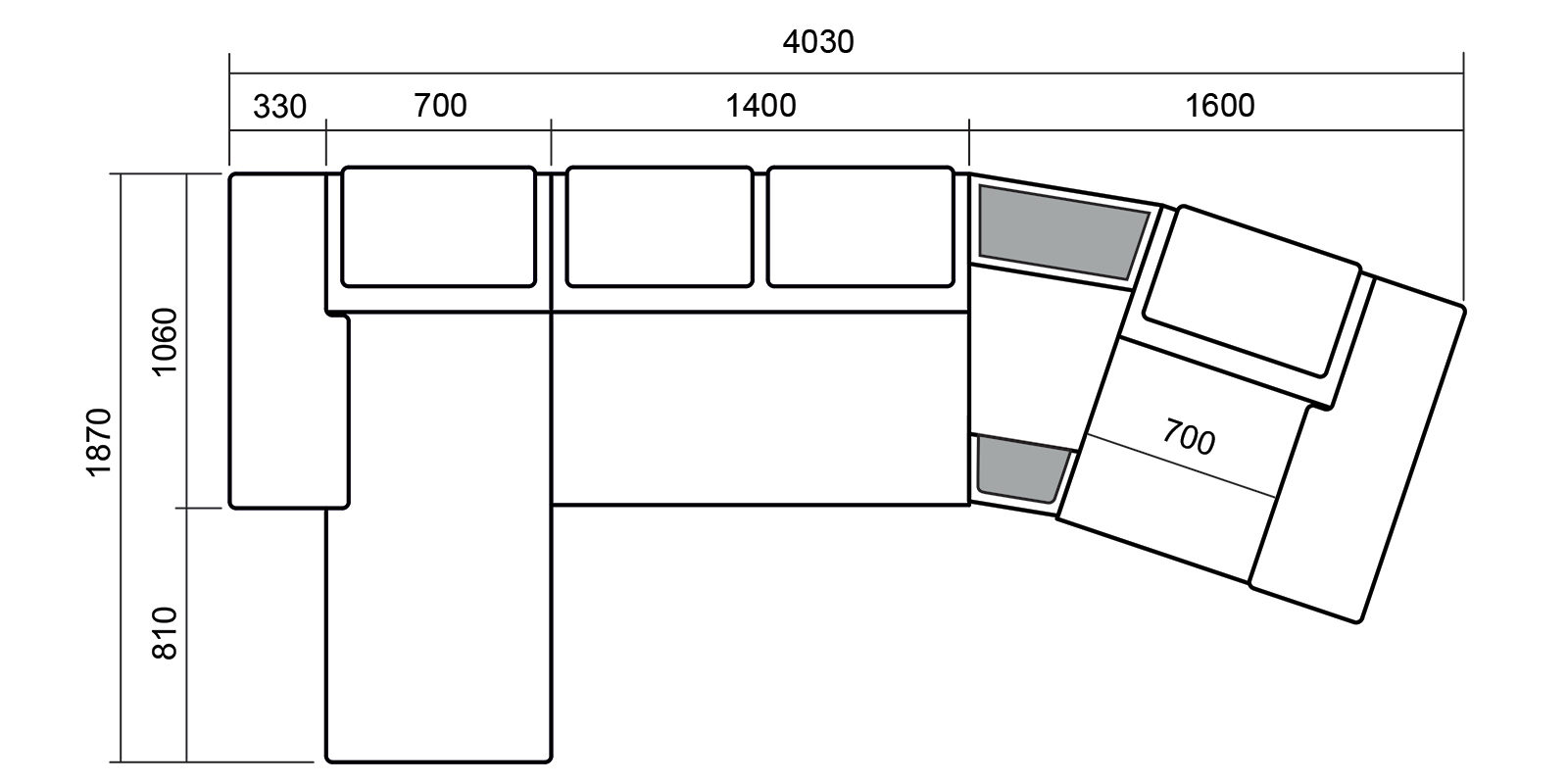 Наполнение сидения дивана состоит из независимого пружинного блока (каждая из пружин которого помещена в отдельный чехол из износоустойчивого материала. Данное решение позволяет каждой пружине сжиматься отдельно от других, что придает сидению высокую точечную эластичность) и высокоэластичного пенополиуретана, что позволяет достичь максимального комфорта сидения дивана.