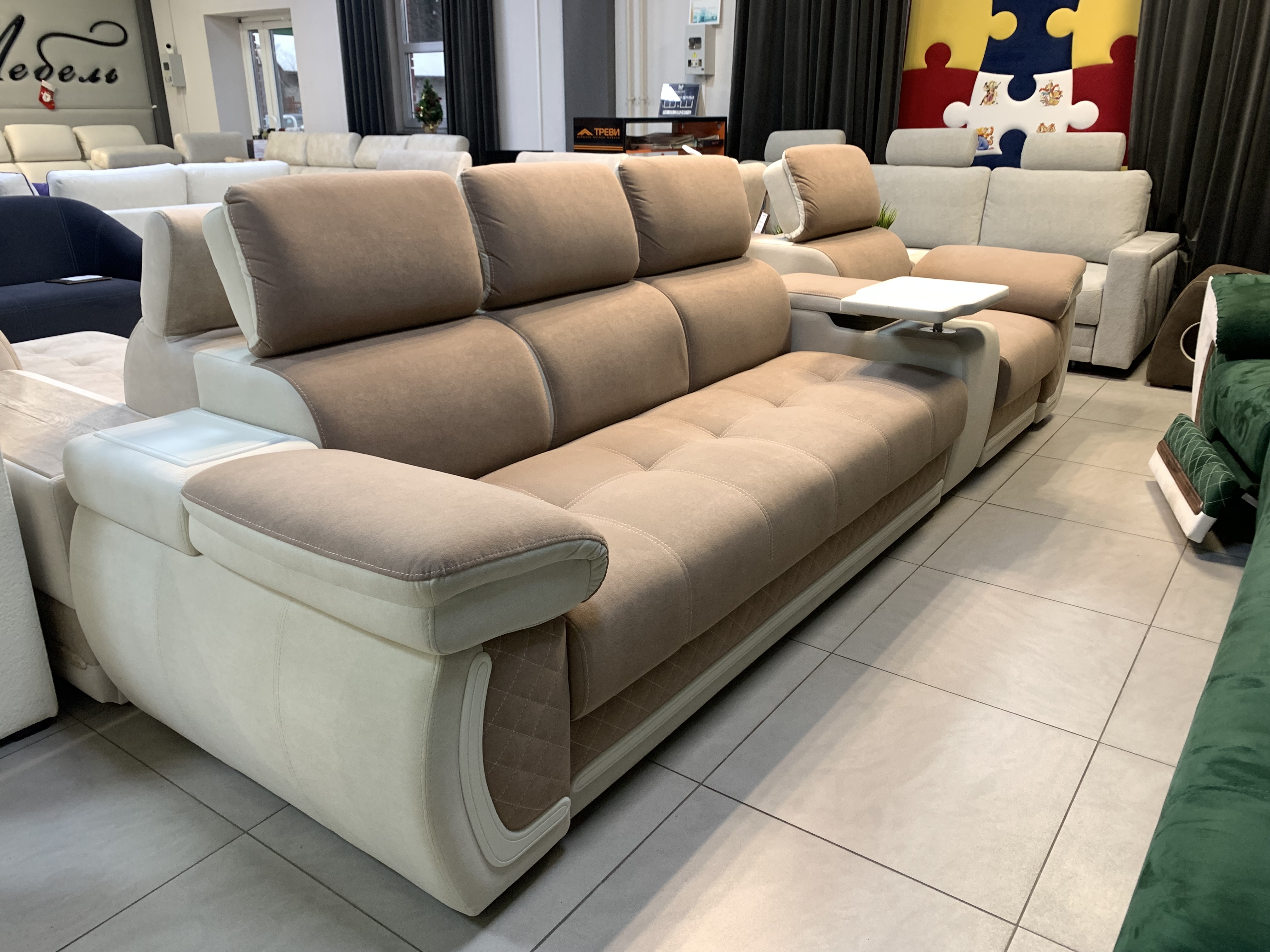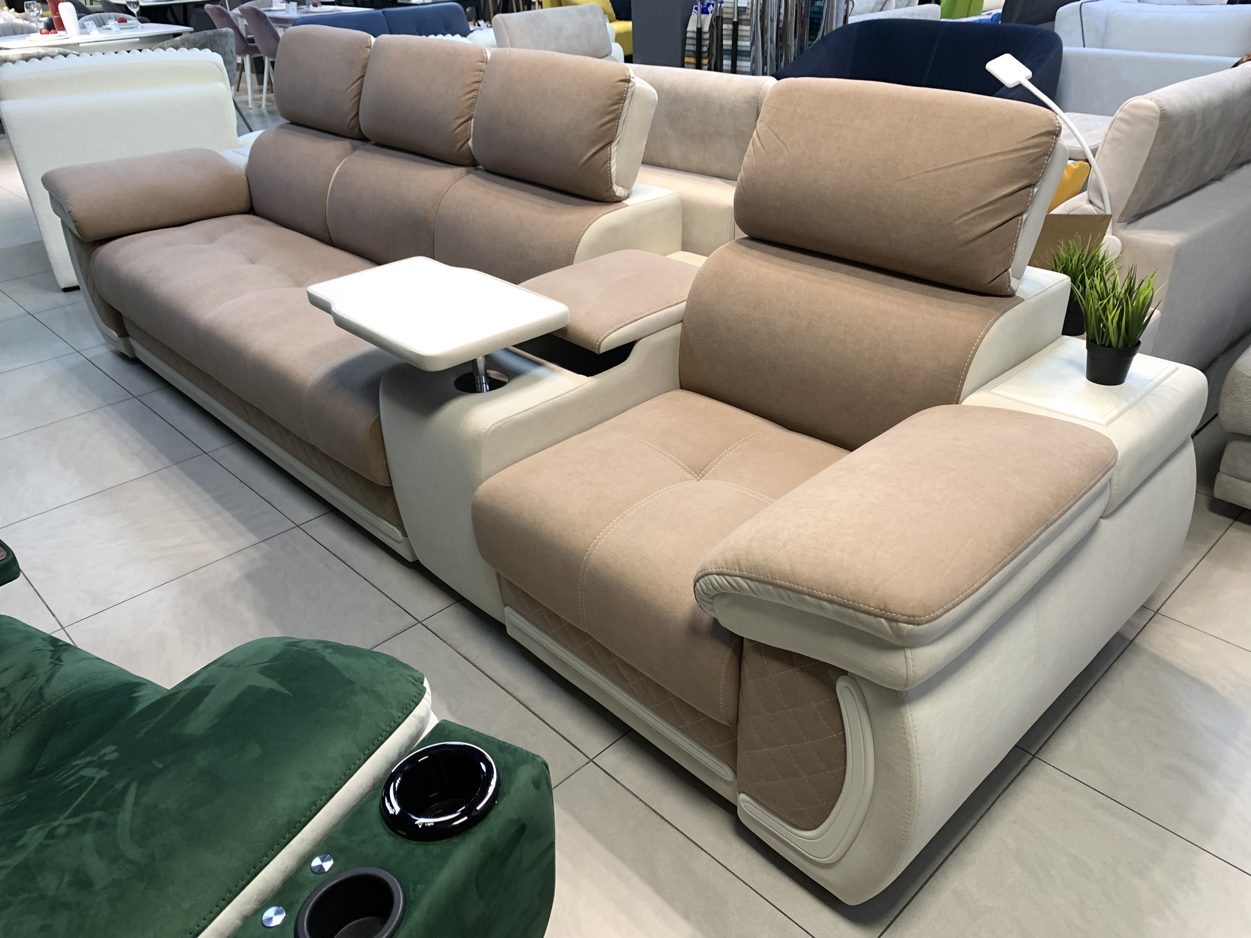 - Диван можно оснастить реклайнером с электроприводом. Клавиши управления сенсорные (работают от прикосновения).