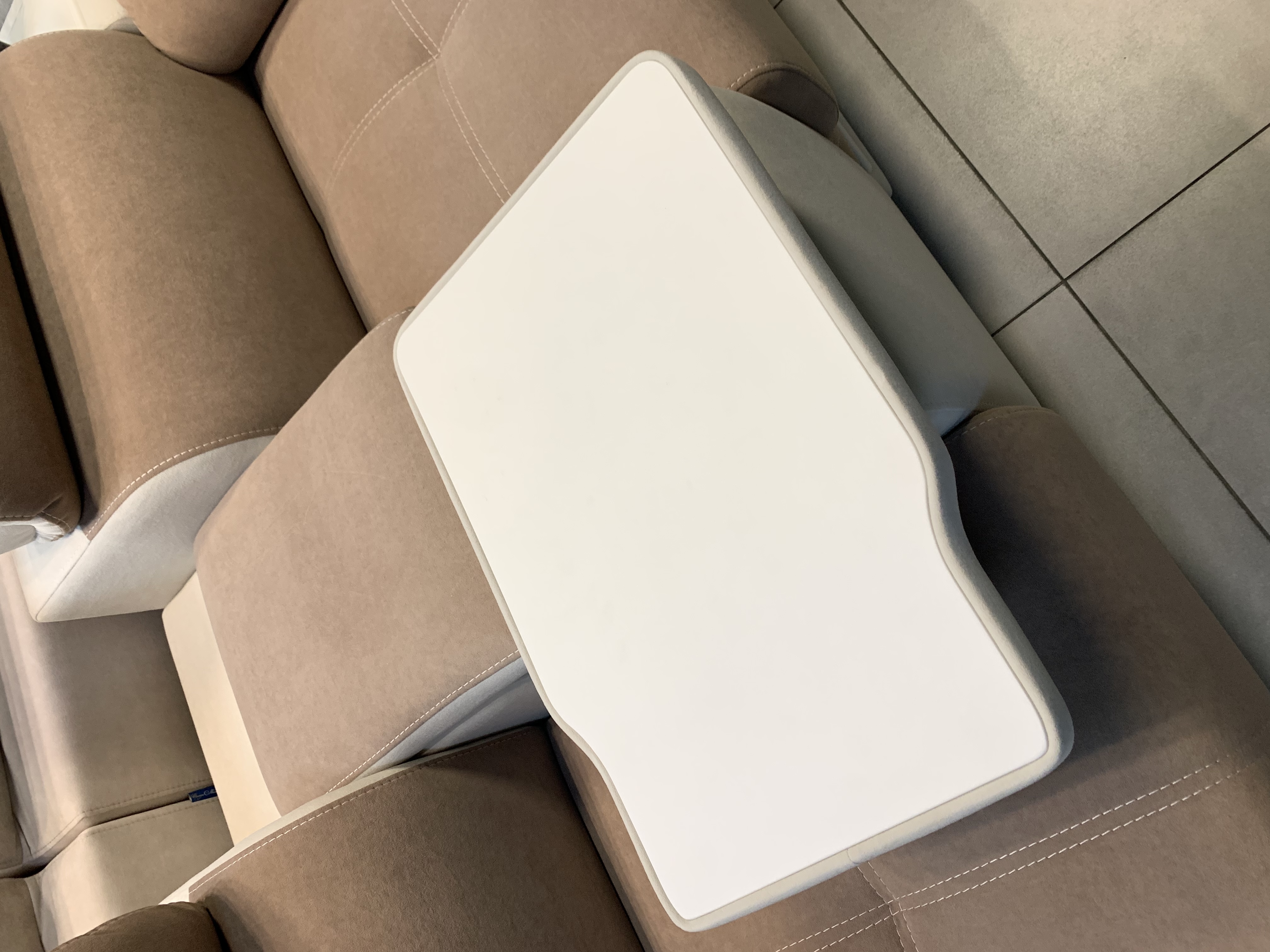 - Скрытая ниша с откидной полкой-столом, на которой будет удобно разместиться с чашечкой кофе или ноутбуком.